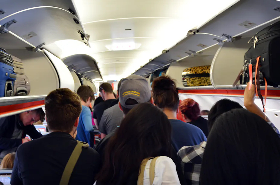 In haphazardly scouring the internet for some royalty-free (read: cheap; still not making any money off this blog like WordPress keeps telling me I can) pictures of the chaos involving with boarding an airplane for an upcoming entry, I came across this one associated with an article entitled “Passengers boarding airplanes: we’re doing it wrong”: