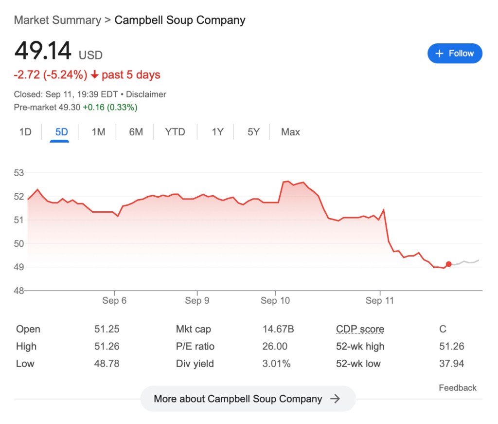 Ultimately, however, it’s not common sense but the free market that decides in a pseudo-capitalist economy like ours. And the first reviews are not great, with CPB stock prices falling by a little over 5% in the two days since the announcement.